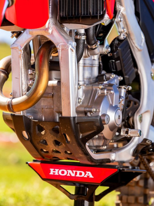 The CRF250R features a robust nine-plate clutch assembly for better durability and torque transmission. The optimised design reduces slip at peak power, offers lighter clutch pull, and provides an improved engagement feel.