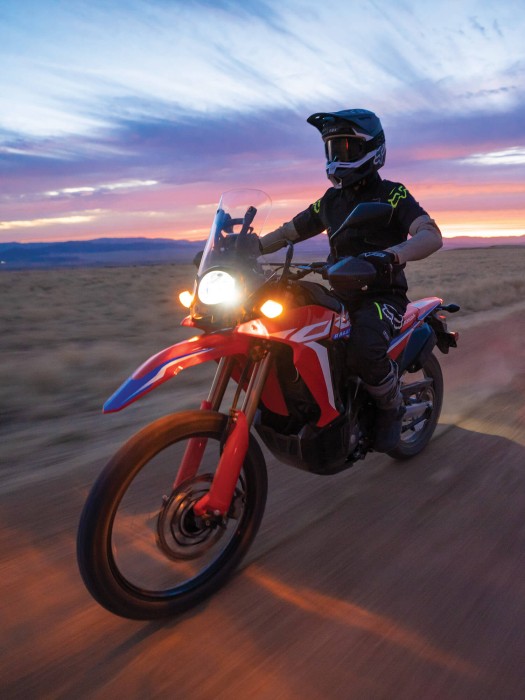 The CRF300L Rally features front and rear hydraulic discs with ABS for excellent stopping power and brake feel, for both on- and off-road use. An added plus: when dirt riding, you can turn off the ABS function for the rear wheel; on the street, it’s easy to switch it back on.