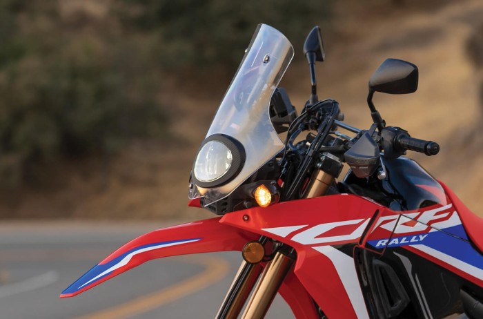 The tall windscreen, the extra-coverage fairing and side panels, and the blended, frame-mounted bodywork are all marks of a true rally machine. The CRF300L Rally looks awesome, like our championship-winning Dakar Rally race bikes, but you'll appreciate the extra wind and weather protection too.