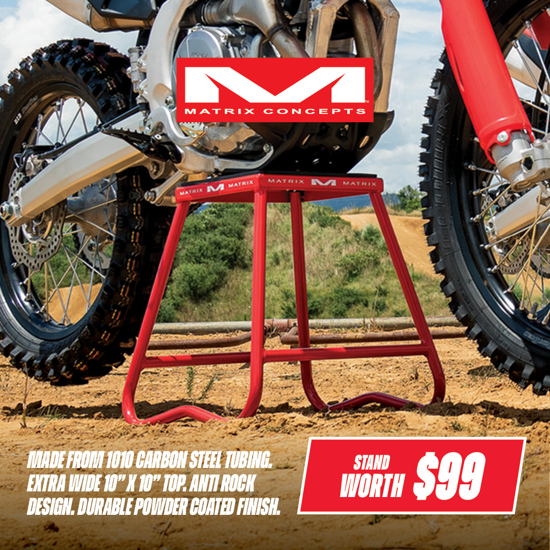 Get on a new Honda CRF450R or CRF450RX and score a pit pack including a Dirtbuster water blaster, Matrix stand, genuine spares and Motul wash & lube.