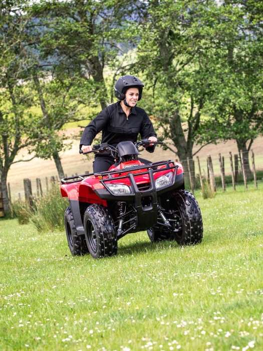 The TRX250TM is lightweight, easy to handle, and very fuel efficient. It hosts a wet sump 229cc 4-stroke OHV air-cooled engine, and a closed crankcase vent system that safeguards against engine oil contamination. Being 2WD it is not specifically designed for towing. However the manual 5-speed gearbox with an automatic clutch means you’ve got plenty of control to inject excitement into any straight. A big bonus is also its size. As the smallest in the range, this TRX250TM is ideal for storing in your garage along with all your other gadgets and gizmos.